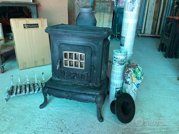 Vendo stufa a legna in buono stato alta 75 largha 50 lungha 55 cm,usufruita anche l’ultimo inverno,tubi in 3sezioni da 12cm di diametro con gomito 90 gradi con raccordo canna fumaria,per una altezza di circa 2 metri.
