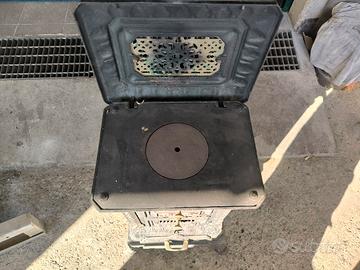 stufa in ghisa riproduzione recente non di antiquariato sportello e coperchio danneggiati come in foto la stufa e stata smontata funzionante ritiro a mano....