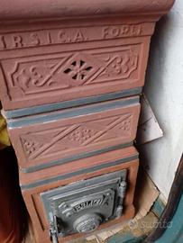 Stufa a legna in terracotta completa di distanziali. Altezza: cm 100 Larghezza: cm 35 Profondità: cm 60