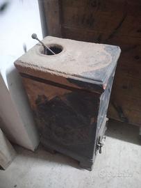 Stufa in terracotta da riverniciare, ma funzionante. Dimensioni: larghezza 32 cm, altezza 87 cm, profondità 45 cm.