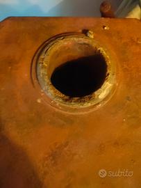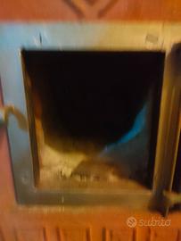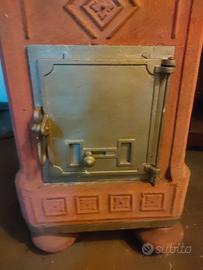 Stufa in terracotta, con porta in metallo. Misure, altezza totale 54,5, 47,5x32,5 dimensione bordo superiore. Diametro foro 10,5. Un piedino a cipolla è staccato ma si può appoggiare comunque sopra. È stata usata poco si nota dallo sportello in ottimo stato. Si trova ad un secondo piano senza ascensore bisogna essere in due per trasportarla. NON SPEDISCO