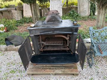 Stufa in ghisa anni 70 ,largha 100 cm sltz 80 cm profonda 60 cm con pedana