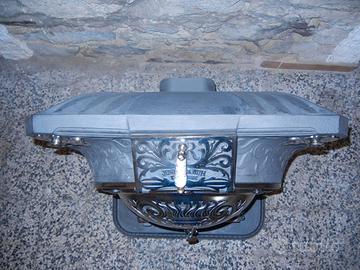 Stufa del 1920 da camino con ruote in ghisa, perfetta, nichelatura effettuata da personale qualificato, da vedere, pezzo unico (da ricerche effettuate non ne ho trovate altre in Europa).