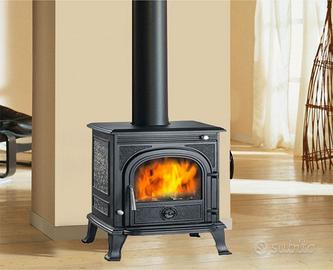 Scegli la solidità intramontabile della ghisa con la stufa a legna Vesuvio. Progettata per durare nel tempo, questa stufa combina un design classico in nero opaco con prestazioni termiche eccellenti, ideali per riscaldare volumi fino a 140 m³.