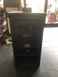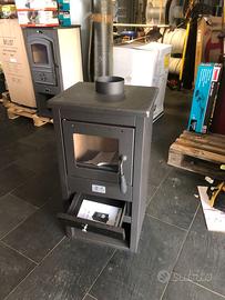 cm43x41x86h; peso 50 Kg; P= 10,7 KW. Rendimento = 73,8% - Consumo legna = 3,100 Kg/h - V=262m3