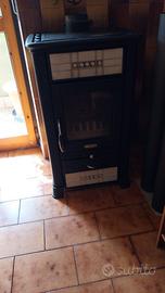 VENDO STUFA A LEGNA da 9kw della linea Olimpia Splendid con piastrelle decorate. La piastra radiante in ghisa favorisce il trasferimento del calore nell' ambiente; ottima la resa calorica grazie alla conservazione del fumo di combustione. La porta fuoco é dotata di vetro ceramico autopulente; il cassetto della cenere é in ghisa, mentre quello portalegna é piastrellato. Il volume massimo riscaldato da questa stufa é di 230 mc. (Vedere scheda tecnica). Assieme alla stufa regalo vari tubi e curve in ferro pesante d.150 colore nero opaco.