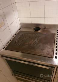 Stufa a legna Nordica con motori ventilazione a termostato e forno per cucinare tutta in acciaio inox, con possibilità di inserire al posto di un mobile.