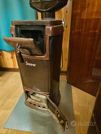 Storica stufa in ghisa Zoppas anni 50. Perfettamente funzionante, in dotazione anche tubi e radiatore per diffusione calore.
