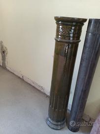 con diversi pezzi per la canna fumaria sempre in ceramica smaltata verde .