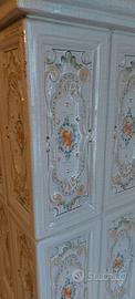 Stufa a legna funzionante in ceramica refrattaria dipinta a mano con cottura a forno. Perfettamente funzionante, ottima anche per arredamento Tenuta e maniacalmente, come nuova Altezza totale 2,68 mt – Base 50 x 50 cm – Corpo 40 x 40 cm (dettagli misure in foto) Ritiro e trasporto a carico dell’acquirente Zona Nichelino (TO)