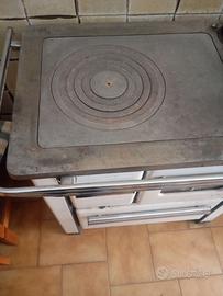 Bella stufa putage bianca a legna. Perfettamente funzionale La stufa, come si può vedere dalla foto, dispone di un forno, vasca per acqua calda e scaldavivande.Dotata di tubi marrone smaltato cos' composti 4 pezzi da 1 Mt 1Pezzo da 1/2 Mt 1 Curva. La stufa si trova in alta val di susa