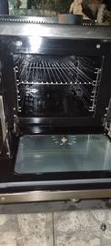 stufa a legna di alta qualità Rizzoli con 2 ventole, motorizzate, predisposta x l'incasso attaccata ad altri mobili completamente isolata, luce forno, basse emissioni inquinanti e consumi ridotti grazie alla seconda combustione. misure 83cm di larghezza e 60cm di profondità. piastra in acciaio, tubo uscita fumi da 12cm di diametro posizionato in alto sopra la piastra a destra oppure dietro la stufa a destra. presente forno, cassettone grande porta legna, sportello porticina x la pulizia dei residui interni di cenere. possibilità di trasporto. molto pesante.