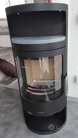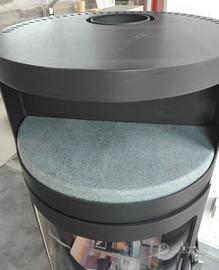 Stufa rotonda con piastra ollare nel vano scaldavivande. Focolare a legna con ottimi valori di combustione. Diametro 50 cm, altezza 112, peso 120 Kg. Potenza termica nominale KW 6. Diametro di uscita fumi 15 cm. Pezzo da esposizione