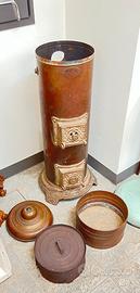 Stufa-scaldabagno-caldaia in rame a legna usata