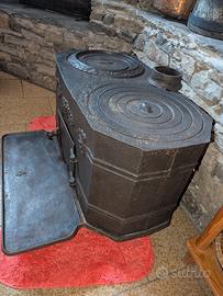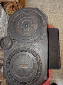 antica stufa in ghisa con decori trattata anni fa