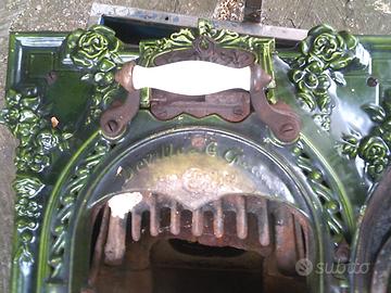 stufa a legna smaltata deville anni 30, vera rarita da sistemare cassetto della cenere