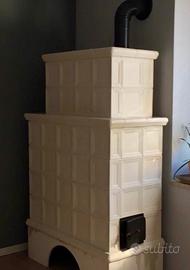 Stufa tirolese tradizionale KERALPEN a Legna ad accumulo che riscalda gli ambienti per irraggiamento, composta da: - zoccolo che sostiene la stufa e la separa dal pavimento - camera di combustione in materiale refrattario dove avviene la combustione della Legna - condotto del fumo, che convoglia i fumi della combustione verso l’esterno - Il rivestimento in mattonelle di ceramiche che accumula calore e lo cede all’ambiente circostante. Stufa tirolese tradizionale si alimenta 1/2 volte al giorno e si pulisce ogni 10/15 giorni. Modello grande K130 che riscalda ambienti fino a 130 m², larga 120 cm, profonda 60 cm alta 132 cm. Adesso si trova nella nostra Taverna pulita e smontata, smontata. Trasporto e montaggio a Cura dell’acquirente.