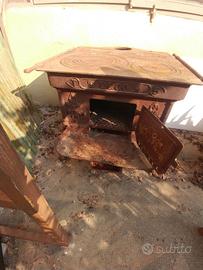 stufa a legna , é rimasta in cortile e ha preso la pioggia ma é bella