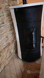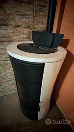 Rivestimento essenziale in ceramica La forma tonda e l'uscita fumi superiore la rendono particolarmente adatta per una collocazione ad angolo