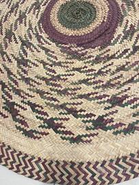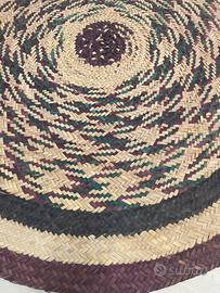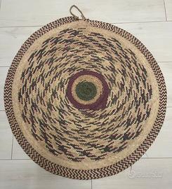 Stuoia rotonda in rafia a tre colori..