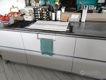 Stupenda cucina creo lube acquistata presso showroom di Milano nel 2019 al prezzo di 28.000€. la cucina viene venduta completa di elettrodomestici Samsung di ultima generazione tutti tenuti in modo maniacale e intatti( frigorifero,piano induzione con cappa integrata,forno Samsung, microonde ad incasso Samsung, lavastoviglie Samsung). I segni segnalati sono stati effettuati in fase di montaggio. Tutti i pensili sono dotati di chiusure ammortizzate( tutti silenziosi e perfetti). La cucina possiede, inoltre,numerosi pensili e vani capienti( scomparto porta posate e utensili). Isola con tavolo incorporato per 4 persone. Regalo 4 sgabelli lavabile e tenute benissimo ( sempre creo Lube tessuto tipo pelle di daino valore 600€). Prezzo leggermente trattabile. Smontaggio e trasporto a carico dell' acquirente. Misure a richiesta se veramente interessati.