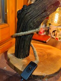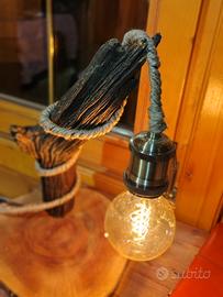 stupenda lampada completamente artigianale, realizzata a mano con tronchi in legno naturale. Ogni pezzo è unico, con venature e nodi che esaltano la bellezza del legno grezzo. La lampada è stata progettata con cura per conservare l’aspetto autentico e rustico del legno.