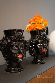 PREGIATE TESTE DI MORO H 40 NERE LUCIDE IN CERAMICA DI CALTAGIRONE, FATTE E DECORATE TOTALMENTE A MANO, ULTIMA COPPIA RIMASTA, VENDESI A META' DEL PREZZO CAUSA LIQUIDAZIONE SOCIETA' IL PREZZO E' PER LA SINGOLA.