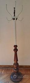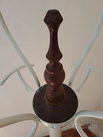 Vendo bellissimo attaccapanni in legno di pregio sulla base (piuttosto pesante) e metallo smaltato in bianco nella parte superiore. A completamento, la parte degli appendini è roteante, facilitando il posizionamento e la presa di ciò che si appende. Misure: altezza 182 cm. diametro base 35 cm.