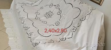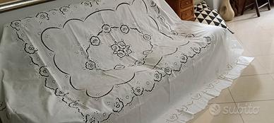 Stupendo Copriletto Puro Lino e Intaglio