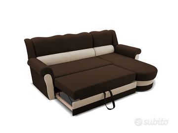 Cerchi un divano classico e che duri nel tempo? I nostri divani, prodotti da aziende competenti e specializzate, sono pezzi unici, realizzati su misura per soddisfare i tuoi gusti più esigenti. Questo divano è realizzato con materiali di prima qualità e costruito per resistere. La struttura solida e i rivestimenti di alta qualità assicurano una resistenza eccezionale all’usura. Personalizzalo con i colori e i rivestimenti che preferisci e goditi il comfort di un divano su misura. Prodotto esclusivo, creato appositamente per te. Sottolineiamo che il rivestimento della funzione letto che fuoriesce può essere di colore diverso da quello evidenziato in foto e comunque non è in tinta ed è differente dalla combinazione di colore del divano che si sceglie. Misure: lunghezza 240 cm – altezza 97 cm – profondità 170 cm – dimensione letto 196×124 cm Perché il divano Arizona è così speciale? Materiali robusti e di qualità: anima in legno massello e imbottitura in schiuma di poliuretano ad alta resilienza dalla densità di 40 kg/m3. Piedi in metallo. Cinghie di sostegno in ferro per sostenere il peso e le sollecitazioni con maggiore resistenza Funzione letto: si trasforma facilmente in un letto aggiuntivo, con meccanismo di apertura DELFIN, ideale per ospiti o per un riposo extra Contenitori: dotato di box contenitore spazioso, perfetto per riporre coperte, cuscini, biancheria da letto o altri oggetti Posti: comodo per 4 persone, offre spazio sufficiente per tutta la famiglia o gli amici Design: presenta uno stile classico ed avvolgente, con linee morbide e superfici accoglienti. I braccioli sono importanti e molto confortevoli, mentre i cuscini sono ben imbottiti per garantire il massimo relax Versatilità: la sua forma angolare lo rende perfetto per ottimizzare lo spazio in salotto o in soggiorno. La funzione letto ed il contenitore lo trasformano in un elemento multifunzionale, ideale anche per piccoli appartamenti