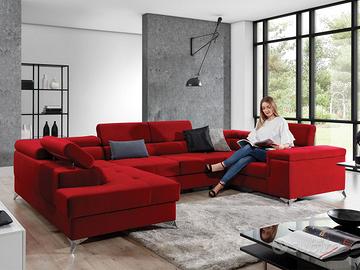 Divano letto matrimoniale angolare ad U dotato di box contenitore, in 11 affascinanti colori, senza variazioni di prezzo!