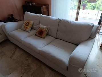 Divano Flexform a 3 posti in buone condizioni, rivestimento in cotone e lino colore panna, i cuscini dello schienale sono in vera piuma d'oca.