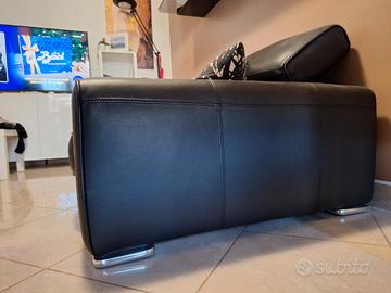 Pelle tamburellata nera. Con punture a vista sempre nere. Ho già testa reclinabili a piacere come rifinitura piedini In acciaio.