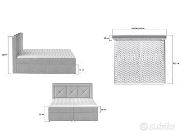 - PREZZO VALIDO FINO AL 22 APRILE 2026! - Il modello Galizia è una interessante novità tra i nostri letti boxspring a basso prezzo . Lo sguardo del potenziale cliente viene immediatamente attratto dalla composizione geometrica della testata, dalle linee squadrate e simmetriche. Oltre alle sue qualità estetiche il letto Galizia è ricco di funzioni ed è adatto ad essere inserito in dei contesti sia classici che moderni. Galizia è composto da una struttura letto matrimoniale con due ampi box ad apertura laterale, due basi per materassi singoli, due materassi singoli sfoderabili ed il top matrimoniale sfoderabile. Il suo sistema di sollevamento, con apertura laterale, ha 4 meccanismi (2 per ogni parte) e risulta così particolarmente robusto, pratico ed agevole oltre ad essere un letto boxspring a basso prezzo. I nostri letti con box hanno il rivestimento posteriore in tinta con il resto della struttura e perciò sono idonei per essere collocati con il retro in vista o anche al centro della stanza. Il peso complessivo del letto Galizia è di ben 163 kg nella versione di rete 160×200 cm e di 188 kg nella versione di rete 180×200 cm. Misure letto 160×200 cm: larghezza 160 cm – altezza 115 cm – profondità 215 cm Misure letto 180×200 cm: larghezza 180 cm – altezza 115 cm – profondità 215 cm EXCELLENT LINE – GARANZIA DI 2 ANNI COME DA NORMATIVA EUROPEA STRUTTURE INTERNE E RIVESTIMENTI MOLTO RESISTENTI PRODOTTO ROBUSTISSIMO E DI ALTA QUALITA’!