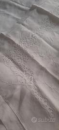 lenzuolo da corredo principesco in lino con ricami a mano e generosissime applicazioni in Cantù continuative su tutta la balza e sulle federe,il lino bianco è di qualità eccellente,le federe sono da riprendere in qualche piccola parte e per questo il prezzo che propongo è incredibilmente piccolo.