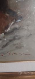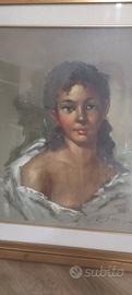 Titolo: Suggestivo Ritratto d'Autore – Olio su Tela con Cornice Dorata Descrizione: Vendesi affascinante dipinto a olio su tela raffigurante un ritratto femminile dal forte impatto espressivo. L'opera si distingue per l'uso sapiente delle luci e per una pennellata materica e decisa, tipica della pittura di metà Novecento. Soggetto: Ritratto di fanciulla con drappeggio bianco. Tecnica: Olio su tela. Cornice: Elegante cornice in legno dorato con passepartout in tessuto, pronta per essere appesa. Stato di conservazione: Buono, con i naturali segni del tempo che conferiscono fascino e autenticità all'oggetto.
