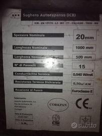 sughero per isolamento anti calpestio e pareti il pannello misura 1 m x 50 cm spessore 1 cm disponibile 300 mq a euro 5 al mq