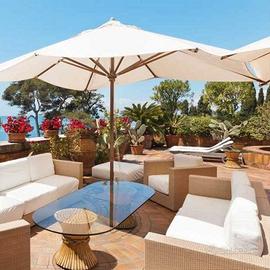 Ombrelloni professionali 3x3 metri modello Sun 3 con palo in legno, altezza 2.50m, ideali per giardino, bar, ristorante, hotel, mare, ecc. al miglior rapporto prezzo - qualità.