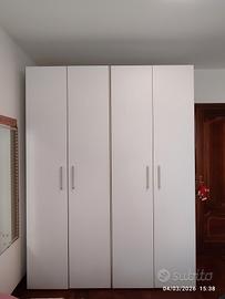 Vendo camera ragazza con struttura letto di una piazza e mezza(no materasso) ,comodino due cassetti,armadio quattro ante piu mobile con cassetti due antine e mensole tutto euro 380