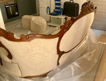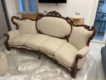 Divano di pregio restaurato completamente e con seduta comoda per 4 persone . Solo visibile di persona e con ritiro in loco e trasporto a carico dell’acquirente , non spedisco. Tessuto morbido e pregiato esternambete, ottima imbottitura., Un pezzo unico da mostrare agli amici e familiari.