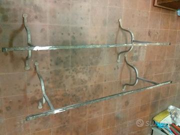 coppia supporti originari per letto anni '700 in ferro forgiato, nessuna saldatura solo ribattitura, in origine devoluti a sostenere piano d'assi e materasso, tuttavia inseribili attualmente in arredamenti ricercati come supporto piano tavolo basso, larghezza utile cm.130.