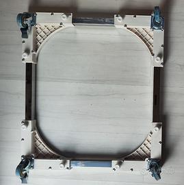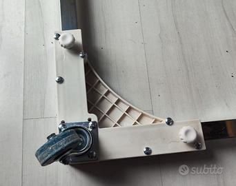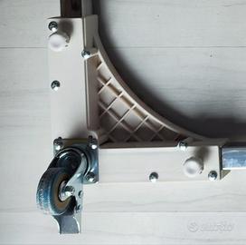 Ho acquistato questo carrello 2 mesi fa da mettere sotto un frigorifero, per poterlo spostare durante i lavori di ristrutturazione della cucina. Una volta montato è risultato molto robusto. Ha fatto ottimamente il suo lavoro e i freni alle ruote funzionano benissimo. La grandezza della base è regolabile (50 - 70 cm). Regge un peso max di 200 kg . Vendo già montato.
