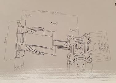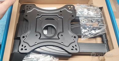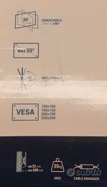 Supporto a parete a doppio braccio orientabile e inclinabile - Predisposizione di fissaggio: VESA - Portata max: 35 Kg - Dimensione max schermo: 55” - Orientabilità: ± 90° - Inclinazione: ± 5° - viteria per il fissaggio - Colore: nero.