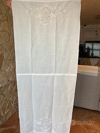 Supporti in ottone utilizzato in bagno per esposizioni asciugamani come da foto, due di questi asciugamani in realtà sono quattro unite al centro una con l ‘altra e sono di misto Lino mentre l’altra con il ricamo a punto croce colorata e’ in cotone, si vende tutto insieme, ma si valuta anche l offerta di singoli oggetti.