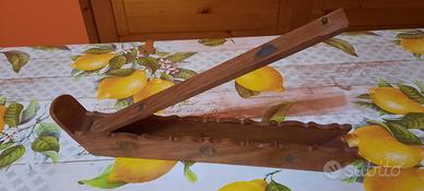 Vendo supporto in legno per bastoncini/coni incenso con contenitore e coperchio raccogli cenere, lunghezza circa 33 cm.