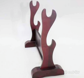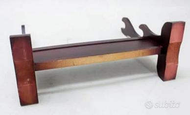 Katana kake, supporto in legno per spada tradizionale giapponese del XX secolo. Misure 16 x 40,7 x 32 cm e peso 540 grammi. Provenienza Giappone.