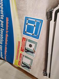 Supporto per lavatrice, regolabile, con rotelle. Scatola leggermente rovinata ma contenuto in ottime condizioni, mai usato