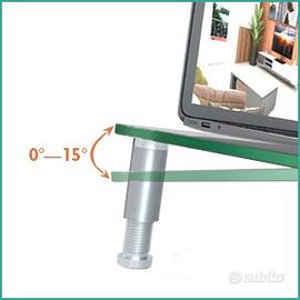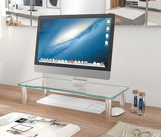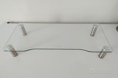 Robusto supporto monitor in vetro temperato e gambe in acciaio.