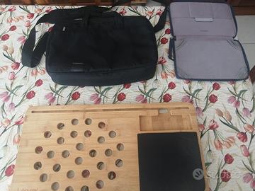 Supporto pc in legno con fori per raffreddamento e tappetino per mouse compreso di due borse (una con tracolla) marca Tucano a 35 €. Prezzo trattabile