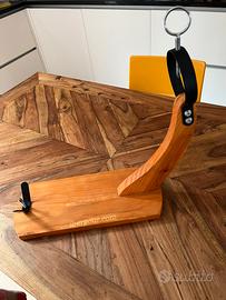 Lo strumento è specificamente progettato per sostenere una coscia di prosciutto.